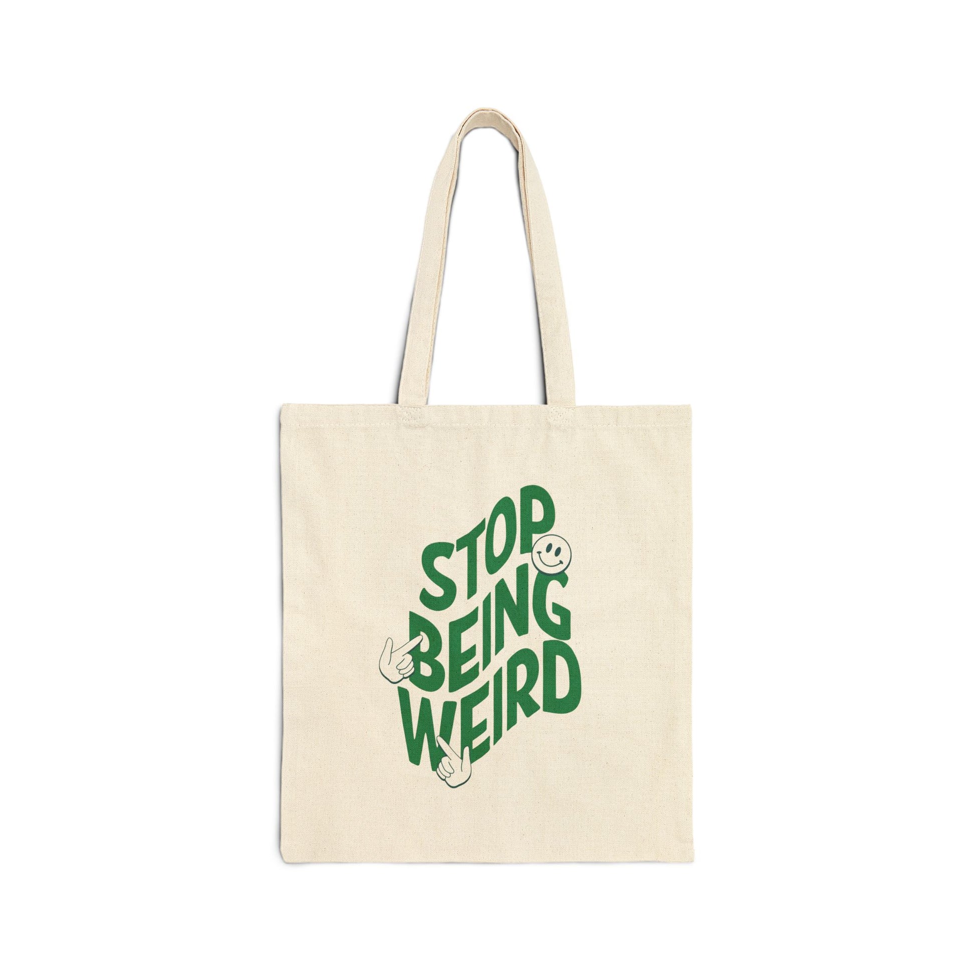 stop being weird cotton tote bag